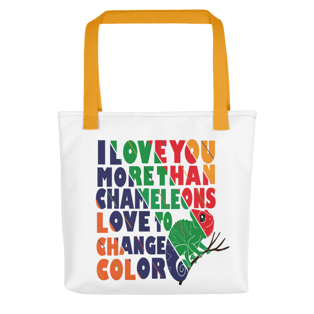 This practical and spacious ILYMThan Chameleons Love to Change Color tote bag will help you carry around everything you love and need.